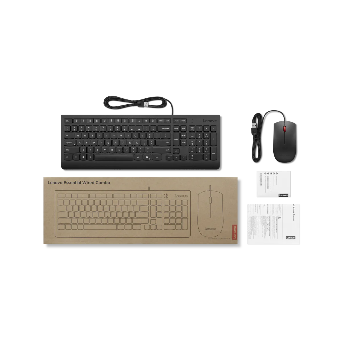 Combo Teclado y Mouse Lenovo Essential con cable USB (Español Latino 171).