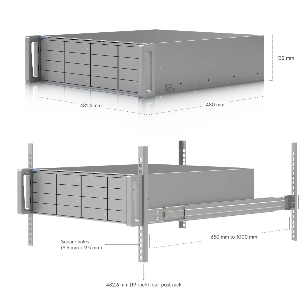 - 🌟 Diseño rack 3U con rieles deslizantes que simplifica la instalación, el mantenimiento y la expansión dentro de tu sala de servidores.