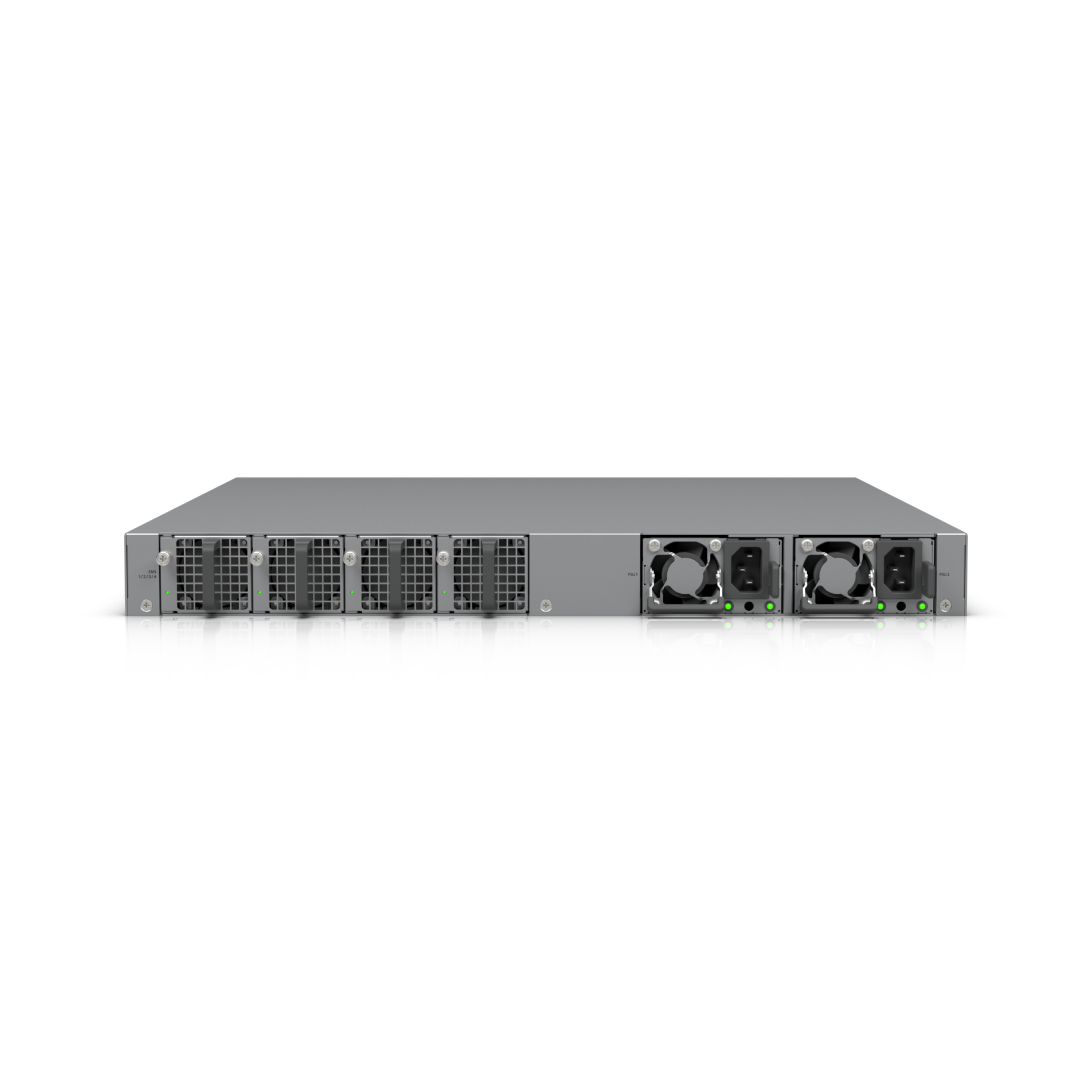 El switch integra dos módulos de energía AC/DC hot-swappable de 1.200W cada uno, permitiendo operar en modo compartido o redundante, además de cuatro ventiladores hot-swappable para mejorar la disponibilidad del sistema.