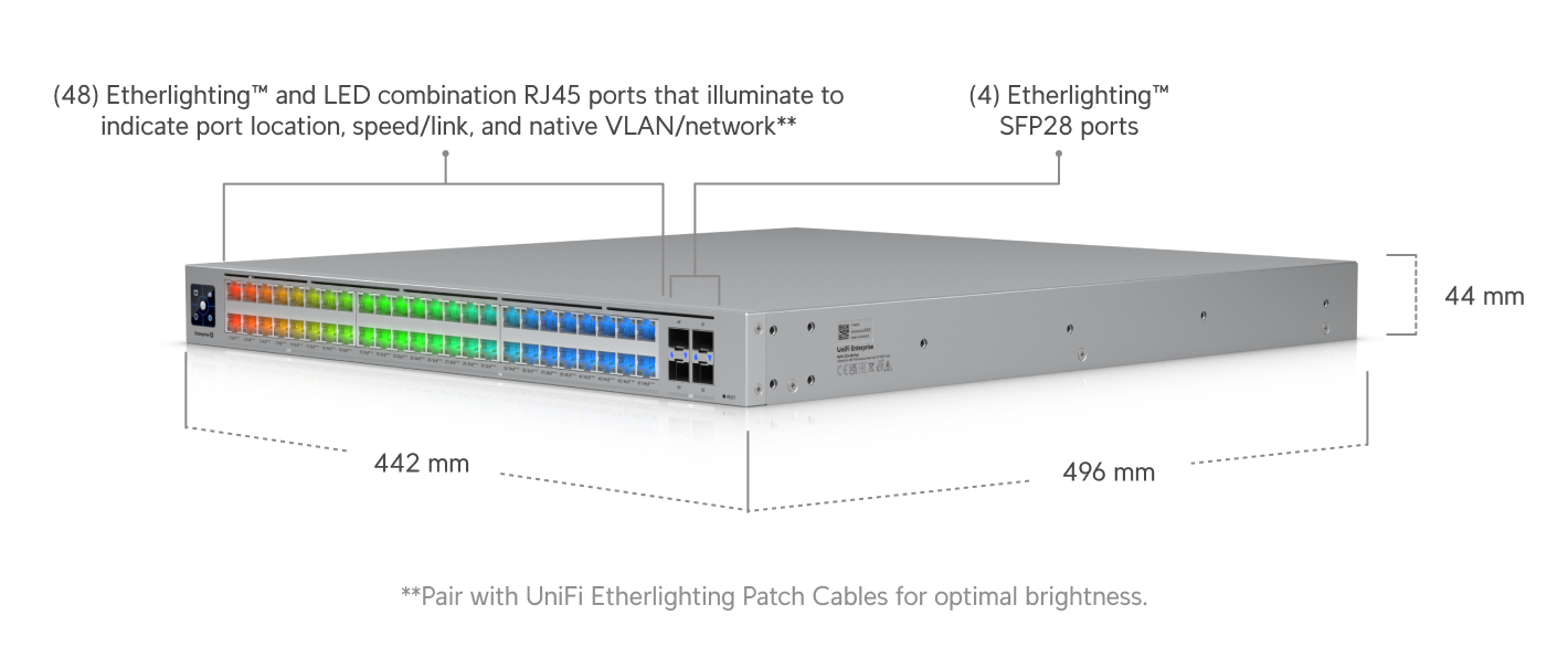 Switch Ubiquiti Enterprise Campus 48p PoE 950W 4p SFP28 MixSpeed L3 Rack